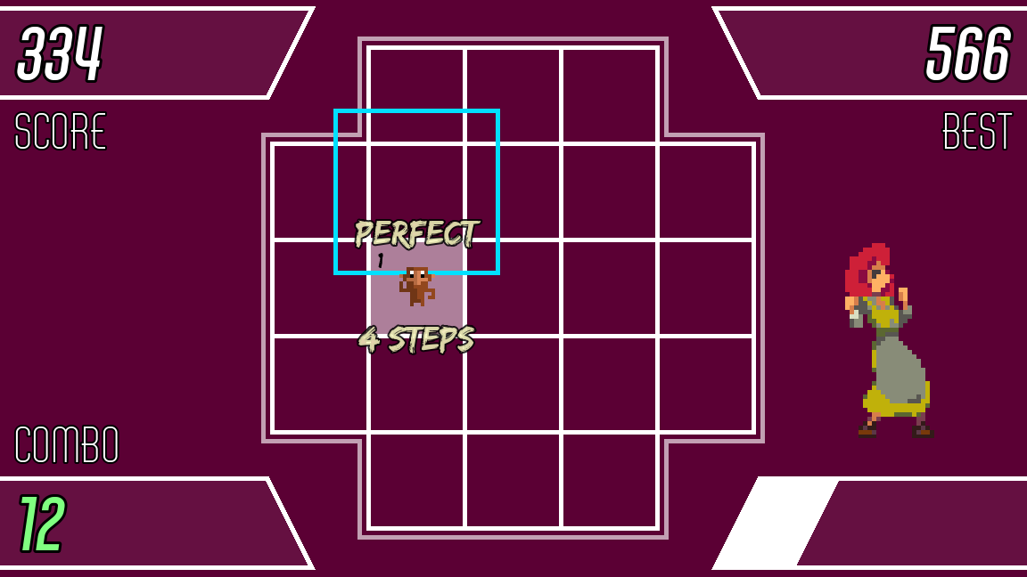 - The more steps you take on the way to a beat, the more points you will earn for hitting that beat (e.g. taking 4 steps will award twice the points of taking 2 steps).
